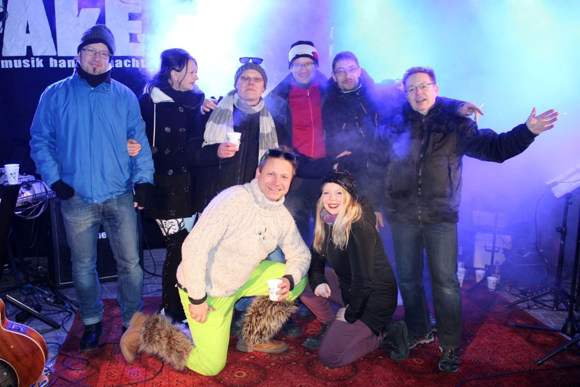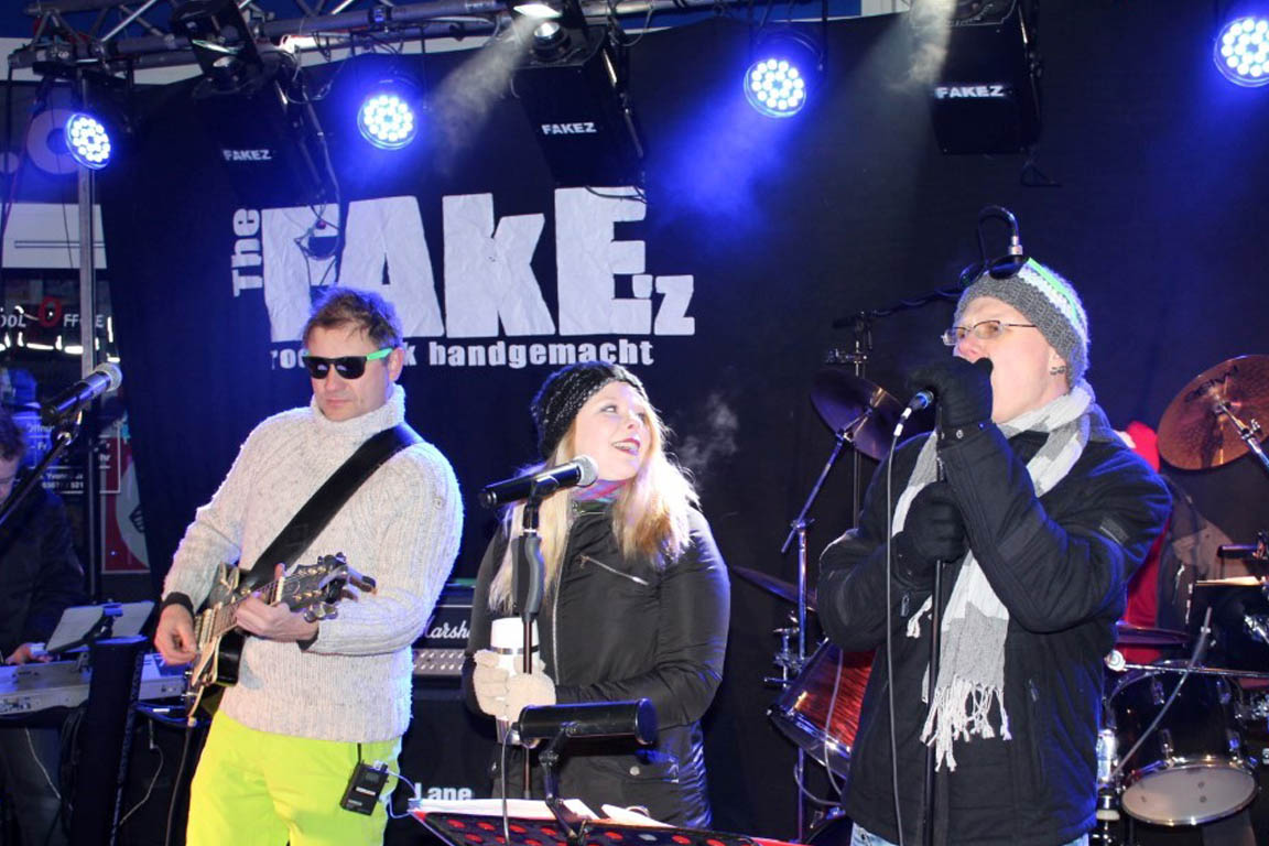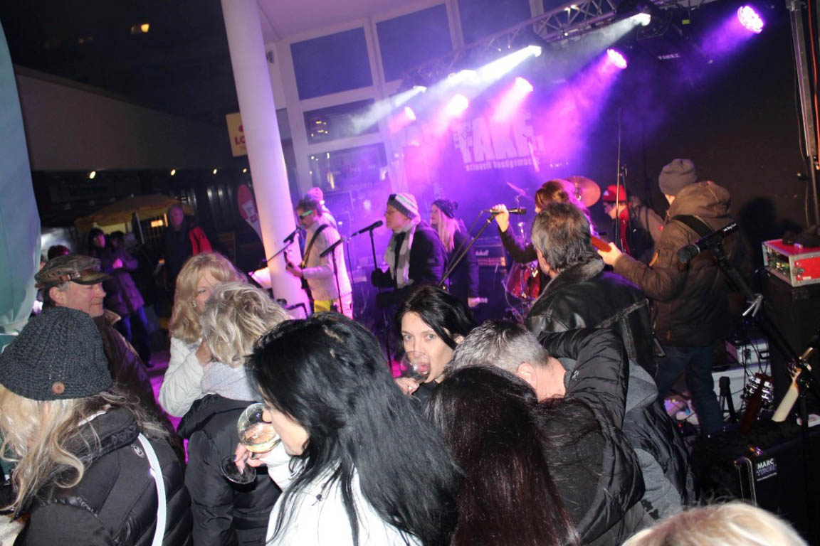 Das ist Open Air und Partymusik in und vor dem Lokal "Champ" - wie in den Skihütten Österreichs, dazu wird natürlich draußen Glühwein und drinnen Bier serviert.